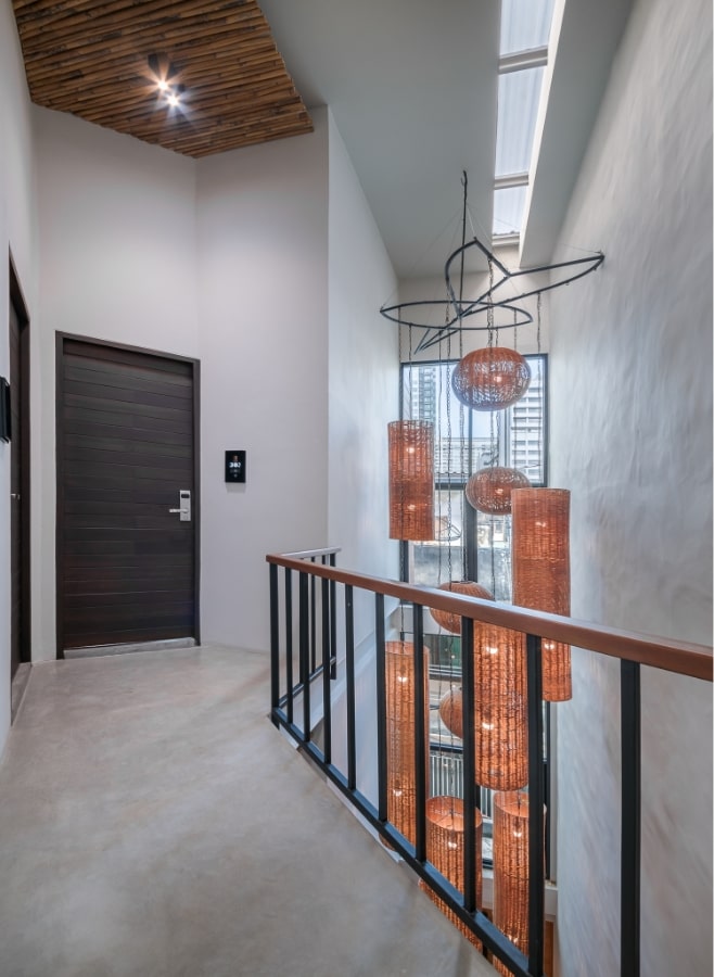 ห้องพักมาตรฐานที่มีพื้นที่ใช้สอยอยู่ที่ 25 ตร.ม. แต่กลับไม่รู้สึกอึดอัดเลยเพราะถูกออกแบบให้มีเพดานที่สูงทำให้รู้สึกว่าภายในห้องนั้นกว้าง